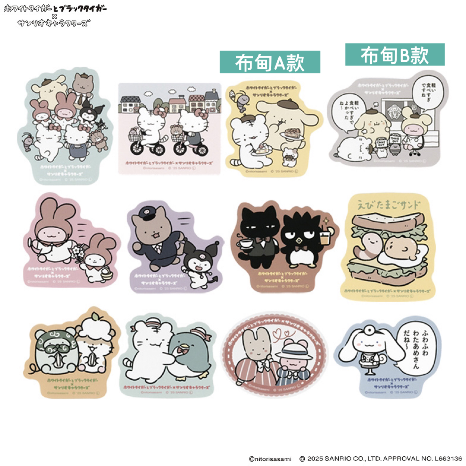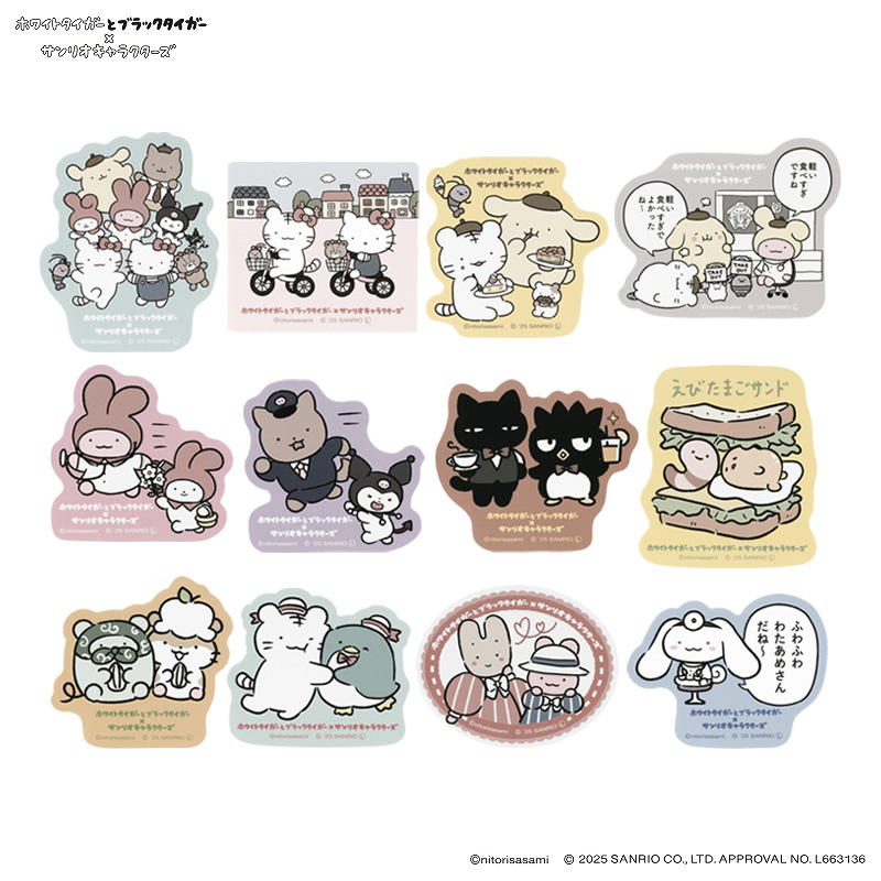 日本預訂📍日本小白虎與黑虎蝦 x Sanrio得意系列 - 角色貼紙 17/10日本開售
